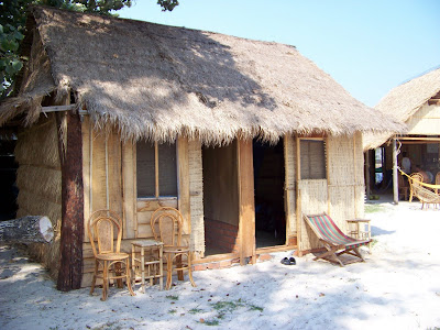 We stayed the night in a dingy ‘mozzie infested’ cheap room and left the next day for Otres beach. Otres beach is a bit hard to get too, but not really when you see the result. It’s a tuk tuk ride down a bumpy dirt road and before you know it you’re in paradise - a deserted blue beach scattered with islands, clean water, beachside huts, warm water and clean sand. The developers (Hilton, Hyatt, Westin) have not yet made an appearance thank god. Till then huts on the sand, electricity via generators and more or less isolation is still possible here. No more than 4 people can be seen swimming at once, there are no shops, just small beachfront guesthouses offering food, the odd boat is anchored close to shore and fishermen can still be seen casting nets from aqua longboats. What’s on the downside you ask? Not much, we used an outside toilet shed/shower, our abode was a grass hut with a less than comfy bed (makeshift slats built by an old Czech battler) but it was hard to complain as we virtually had a private beach and our bungalow oozed Cambodian charm.