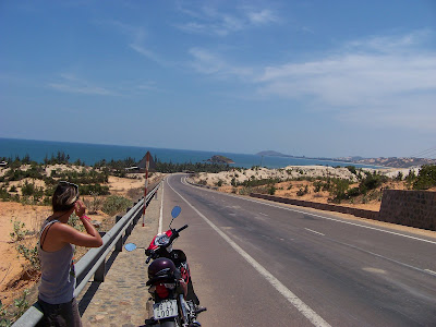 Day 3 we decided to get off our bums and hit the road on a scooter that a random man had offered us to hire the day before while we were riding push bikes down the street. It was delivered at 9am and we set off around 10am in search of huge Sand Dunes which you can apparently slide down. The first 10 kms you are blessed with the smells of Fish Sauce, Mui Ne being the epicenter of Fish sauce production and the odour certainly stings the nostrils! After passing the stench and driving 50km to a rather random town we decided to give up and call it day, considering the scenery had been stunning, the roads deserted and well maintained (plus we have sand dunes at home) we were happy to return home.